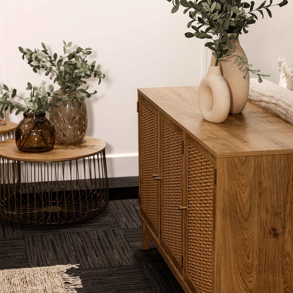 Our new Bordeaux range will offer a modern yet boho vibe to your decor. Wooden framed pieces with on-trend rattan fronts, complete with gold fittings and handles to add that little extra luxe detail.
