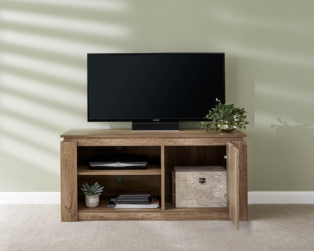 If space is limited, it’s wise to invest in more compact furnishing pieces that are designed to make the most of the available area. Take this Canyon Oak compact TV unit. Its bijou dimensions belie the unit’s storage capacity, which includes a pair of open shelves for TV boxes or gaming equipment, as well as a cupboard for books and media. The unique oak-effect 3D finish provides a highly realistic wood-style finish that closely mimics oak grain. A smart and practical piece that adds a luxurious look to any living room.