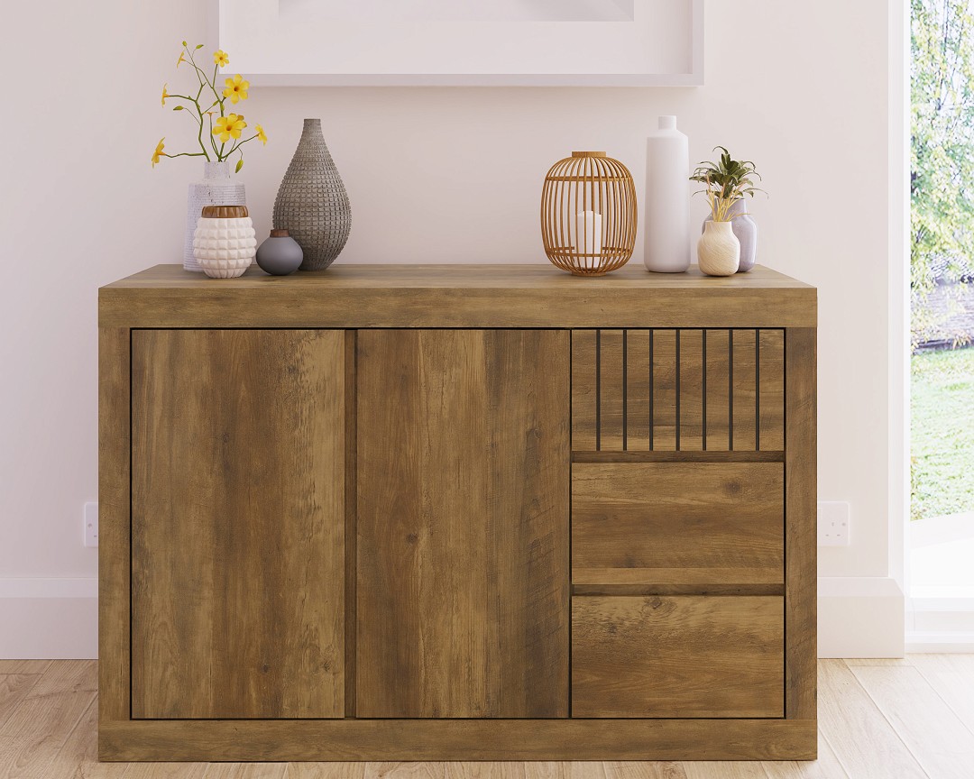 Every home needs ample practical storage – especially if you want to be in with a chance of keeping your living space neat and tidy, but no one said storage had to be bland and boring. The Cartmel Sideboard comprises of a large two door cupboard compartment with adjustable shelf along with three stacked drawers. This versatile practical unit will accommodate all your storage needs. The vertical accent lines on the selected drawer front reflects current trend overriding the simplicity of its design. Also available in the Cartmel Range is a Lamp Table/ Coffee Table and TV Unit.