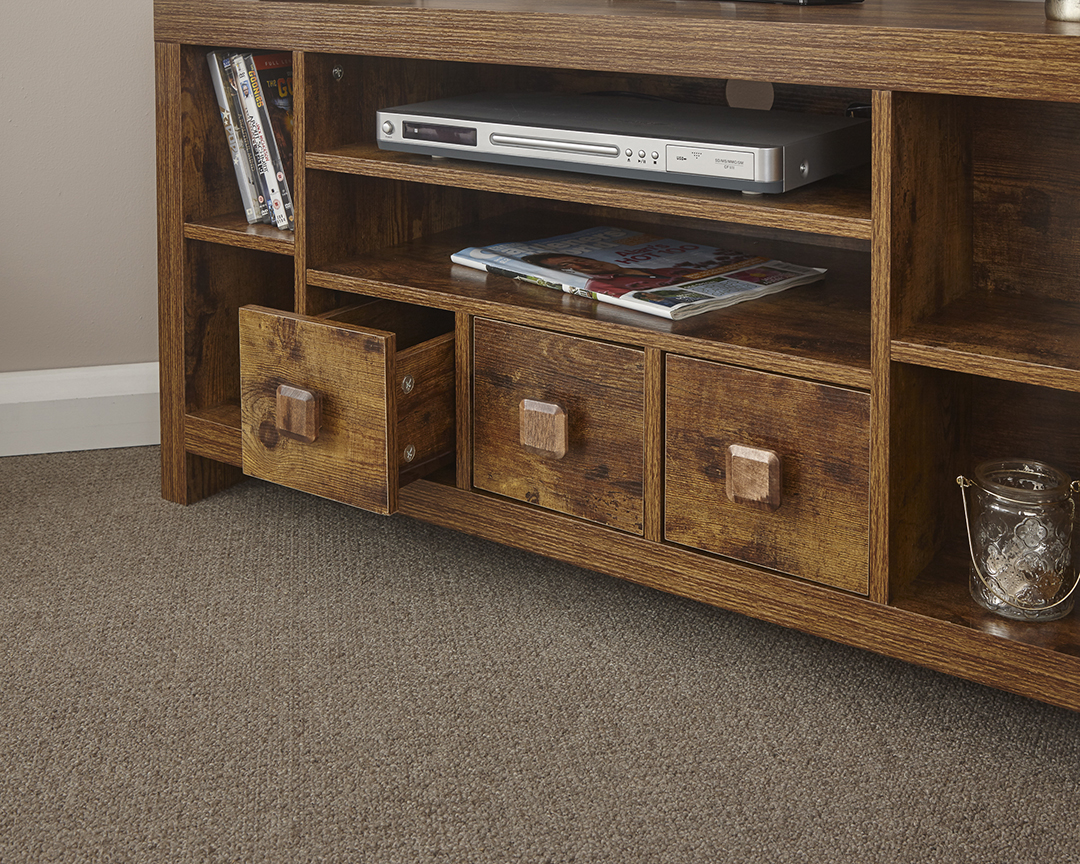 Where space is at a premium, furniture that fits neatly into the corner of a room is a smart choice – and if it helps keep ugly cables tucked away out of sight, all the better. This handsome corner TV unit can house a completely self-contained entertainment centre. The Indian-inspired hardwood-effect finish gives it warmth and character, while the carefully designed arrangement of shelves and drawers can accommodate ample tech and media.