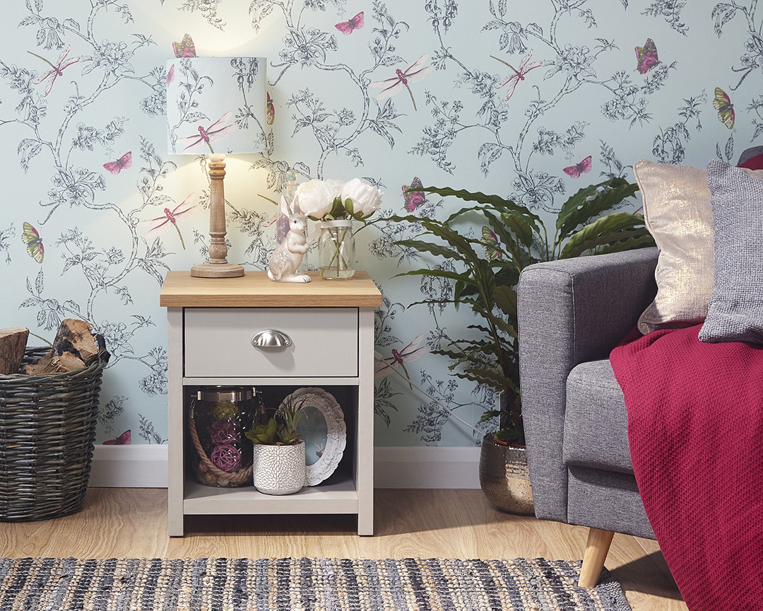 This charming lamp table will bring contemporary styling to any home. Features include a handy drawer with a satin silver handle and a useful storage shelf underneath. Its slate blue, matt grey or cream finish and contrasting oak effect top matches perfectly with the rest of the Lancaster range and would be at home in any living or dining room.