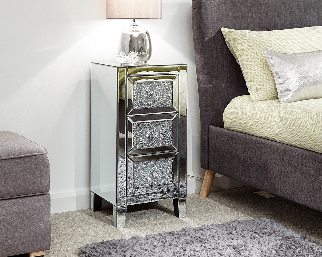 Lucia 3 Drawer Jewelled Bedside Table