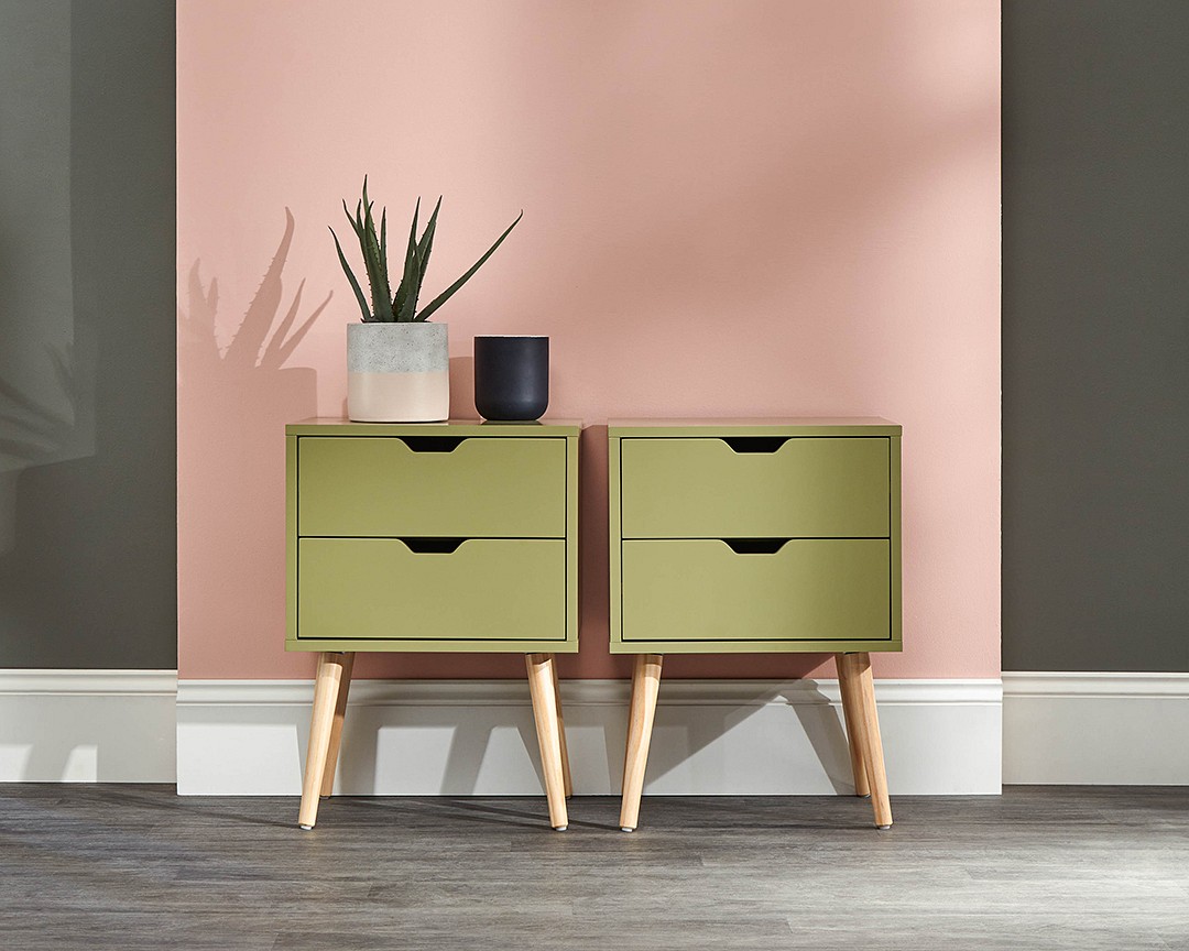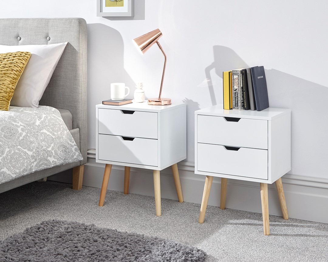 Bursting with Scandinavian style, the Nyborg 2 drawer bedside is understatedly elegant. This bedside table is the ideal companion for the minimalist style interior. With 2 9-litre drawers and wooden “Scandi” legs.